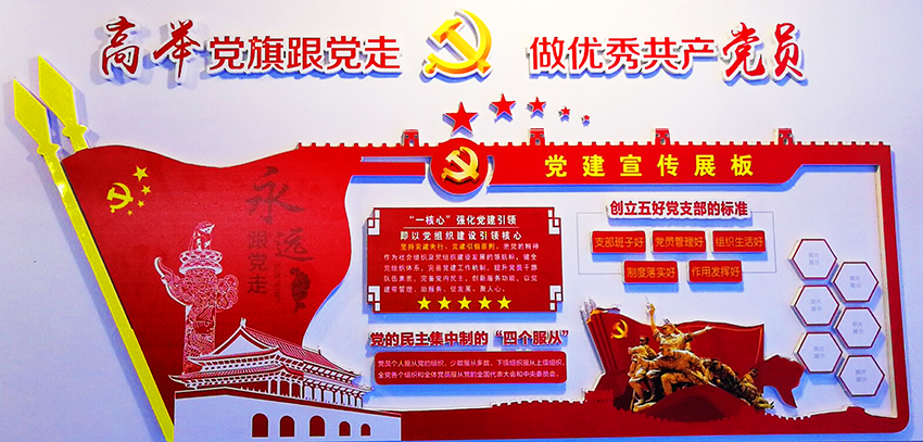 黨建宣傳牌集展示、宣傳、教育等多種功能于一身,設(shè)計(jì)風(fēng)格應(yīng)當(dāng)美觀大氣,莊重大方,使干部群眾能夠一目了然,易懂易記。